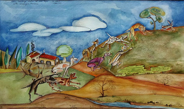 Cani randagi dietro ad una lepre nella campagna toscana